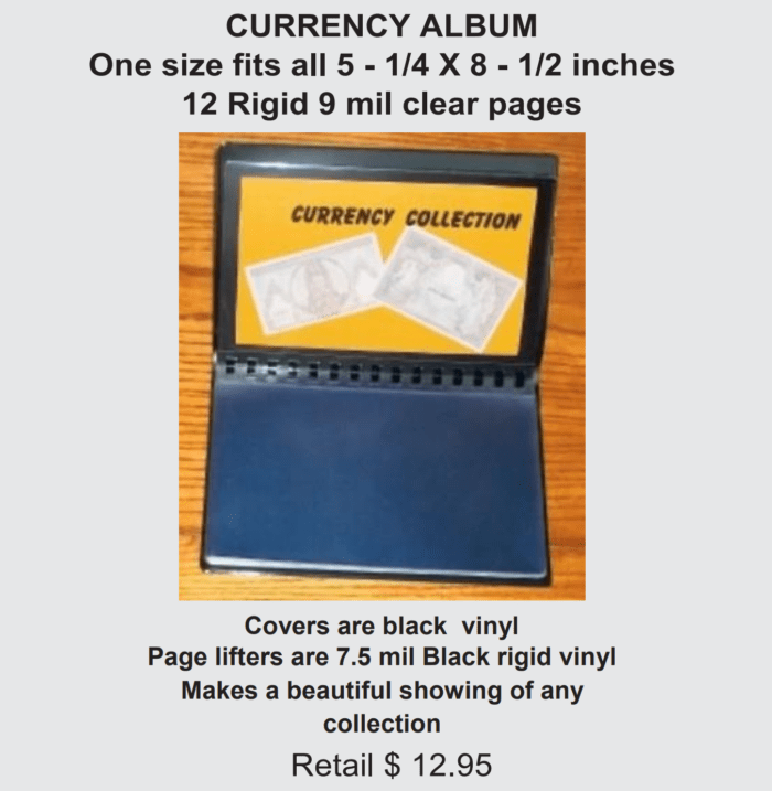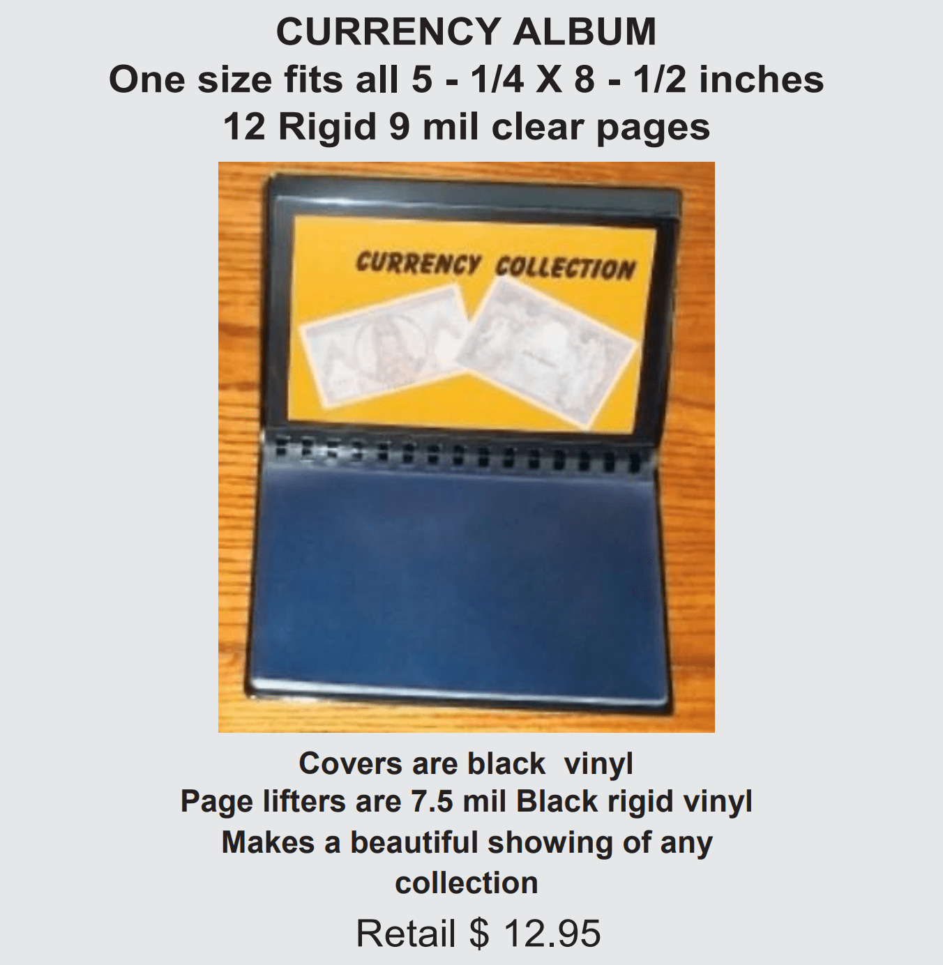Covers are black vinyl Page lifters are 7.5 mil Black rigid vinyl Makes a beautiful showing of any collection Retail $ 12.95